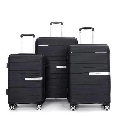 FURNIinspire Bag And Luggage Sets 3 Piece Travel Suitcase Set With Spinner Wheels, Stylish Lightweight Carry On Luggage, Black, 18.9″*11.77″*28.94″