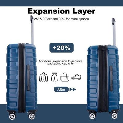 FURNIinspire Bag And Luggage Sets 5 Piece Expandable Hard Shell Suitcase Set Stylish Rolling Travel Luggage For Family, Blue, 20.28″*11.42″*30.31″