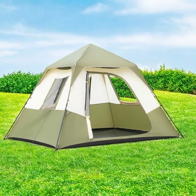 Simplify your camping trips with this spacious family tent designed for quick setup and all-day comfort. The pre-attached pole system allows for effortless assembly, so you can spend less time pitching and more time enjoying the outdoors. With room for multiple campers, this tent is perfect for family getaways or group adventures. The waterproof fabric and sealed seams provide reliable protection from light rain, while mesh windows and doors ensure fresh airflow and visibility.