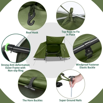 - All-in-One Camping Solution: Combines a sturdy elevated cot with a protective tent, eliminating the need for separate sleeping and shelter setups.