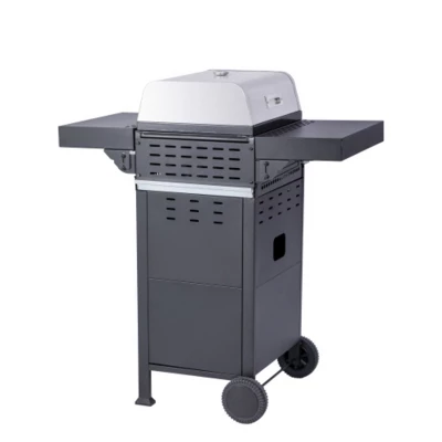 Elevate your outdoor cooking with this professional 2-burner gas grill featuring premium stainless steel construction. The powerful burners deliver restaurant-quality results whether you’re grilling burgers or baking pizzas. The enameled cooking grids maintain perfect heat while the included hanging basket expands your cooking options. Thoughtful details like foldable side tables and easy-roll wheels combine functionality with convenience.