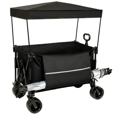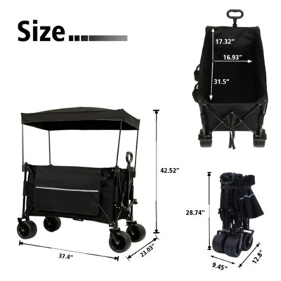 FURNIinspire Outdoor Serving Carts this heavy-duty foldable wagon cart features a patented one-second folding system. Simply pull the strap to deploy the 400L cargo space or collapse it into a compact size for storage—no tools required.Engineered for effortless mobility, the dual-bearing 360° swivel front wheels glide seamlessly over rough terrain, while wide-track rear wheels prevent tipping. The 90° rotating handle adapts to pushing or pulling motions, reducing strain during extended use.