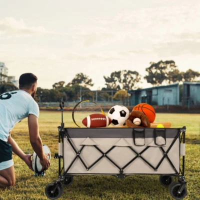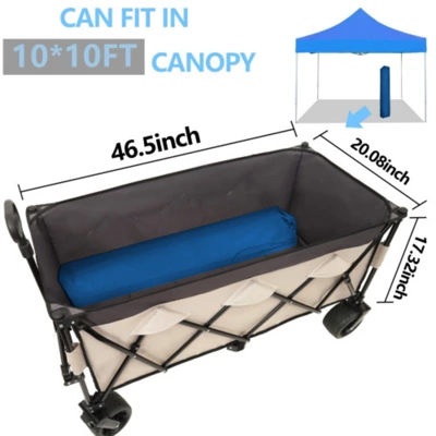 FURNIinspire Outdoor Serving Carts built with robust materials, this foldable utility wagon supports up to 480 lbs, making it perfect for transporting heavy loads effortlessly.Easily folds flat for convenient storage and transport. Whether you’re storing it in your garage, car trunk, or closet, its compact design saves space without compromising functionality.For gardening, camping, hiking, beach trips, and more.