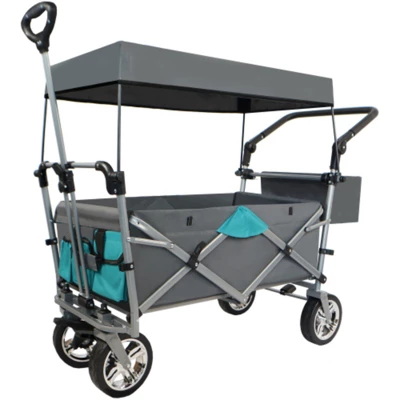 - Removable Canopy Handy Extras: The detachable canopy keeps your stuff shaded, while built-in drink holders add convenience. Plus, the adjustable handle makes pushing or pulling a breeze.
