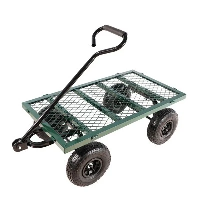 FURNIinspire Wheelbarrows And Lawn Carts Double Fence Utility  Cart Wagon Cart Garden Cart, Ideal For Outdoor Activities, Green, 41“*20″*39″