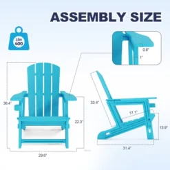 FURNIinspire Patio Accent Chairs Outdoor Folding Chairs Adirondack Chair, Portable Chair With Handles For Beach, Backyard, Blue, 31.4″*29.6″*36.4″