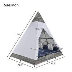 FURNIinspire Patio Chaise Lounges Patio Daybed With Cushions And Tent, Outdoor Wicker Sunbed For Backyard, Garden, Gray And Blue, 72.4“*90.5″*102.4″
